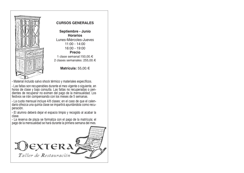 Dextera Taller de Restauración ofrece cursos personalizados de restauración de muebles, en grupos reducidos de un máximo de nueve alumnos.