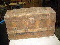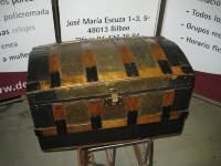 Baúl de hojalata almacenado en una gambara; el tratamiento incluyó la eliminación del óxido, la reintegración de la policromía, realización de tirantes de madera, de cantos y chapas, forrado interior... |